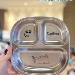 加厚加深【卡皮巴拉:三格】餐盘+勺子