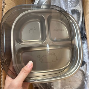 卡皮巴拉【三格】餐盘+勺子+盖子