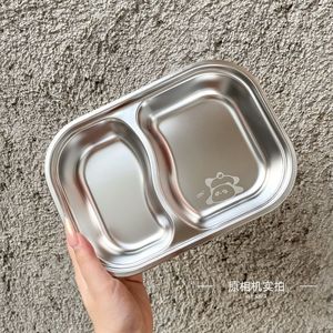 不锈钢儿童餐盘宝宝吃饭卡通盘家用学生便携分格便当盒韩式三格盘