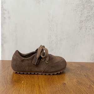 前系带装饰儿童复古休闲风翻毛皮小板鞋2025年秋款男女童小单鞋批