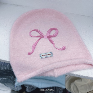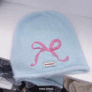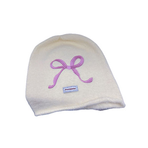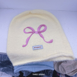 批发韩国2025年秋冬新款蝴蝶结刺绣贴布毛线帽羊毛混纺护耳针织帽