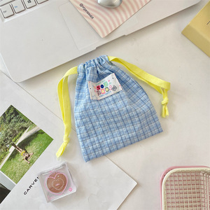 5831 夏季清新格子收纳袋杂物口红学生外出束口袋旅行洗漱收纳包