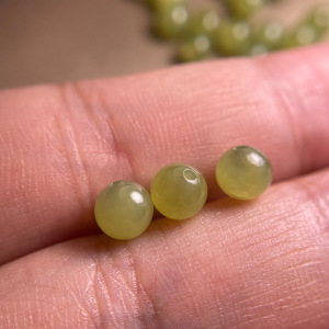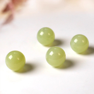 精选青海料和田玉黄口圆珠散珠顶珠单珠天然玉石手串手链diy配饰
