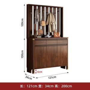 中式鞋柜实木家用门口挂衣架一体玄关柜带鞋凳入户衣帽柜