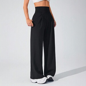 欧美跨境高腰收腹休闲裤女束腰显瘦垂感直筒裤女士运动瑜伽裤长裤