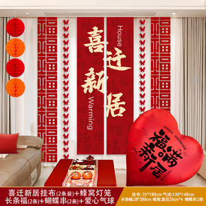 喜迁新居挂布(2条装)+蜂窝灯笼 长条福(2条)+蝴蝶串(2条)+爱心气球