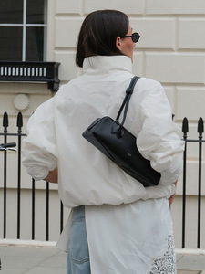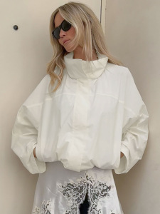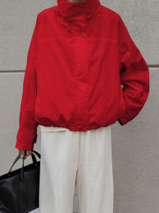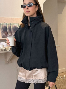 秋冬新款宽松抽绳户外冲锋衣外套设计感白色黑色立领风衣2025跨境