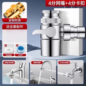 全铜加厚【开关式●面盆分水器】秒变双出水(接4分螺纹管+起泡网嘴)