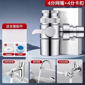 合金【开关式●面盆分水器】秒变双出水(接4分螺纹管+起泡网嘴)