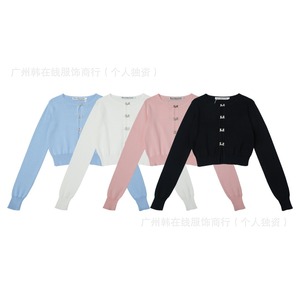 韩国restandrecreation新款rr夹设计扣短款针织开衫rr上衣女