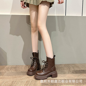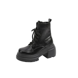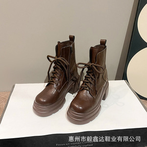 小个子内增高马丁靴女2025新款复古靴子机车靴细带单靴英伦风短靴