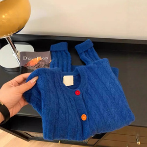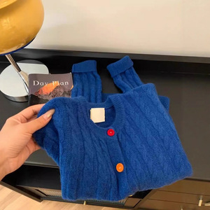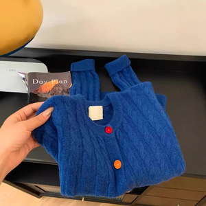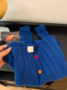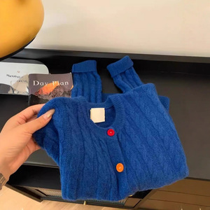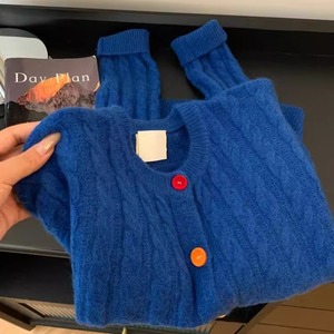 克莱因蓝针织开衫外套女秋冬韩系慵懒风毛衣洋气独特别致上衣春秋