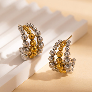 耳饰小众轻奢设计感耳钉弧形渐变耳坠圆珠C形耳环跨境钛钢耳环女