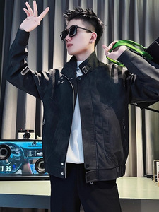 美式复古工装痞帅夹克男春秋季高级感立领外套男百搭宽松夹克男