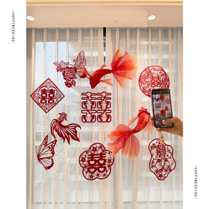 婚房装饰套装❖(红色)剪纸无纺布8件套