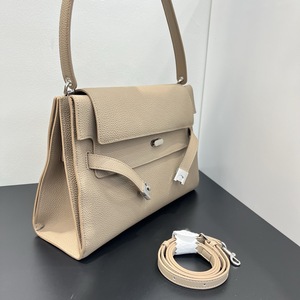 25新款磨砂凯利包银扣中长款斜跨单肩高级真皮女士包晚宴包手抓包
