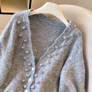广州十三行高货爆款~镂空V领宽松抽绳慵懒风针织衫显瘦上衣女秋季