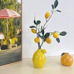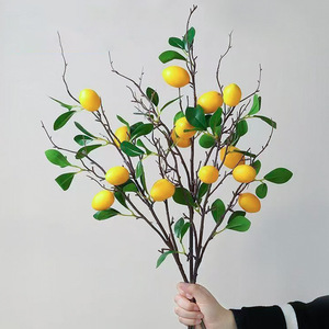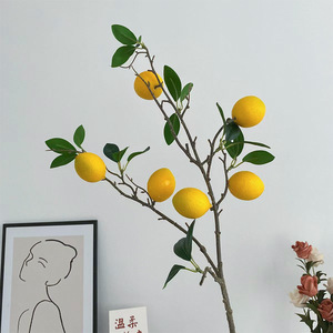仿真6果柠檬枝柠檬果长枝叶家居客厅玄关落地摆件道具仿真柠檬