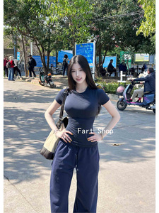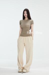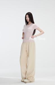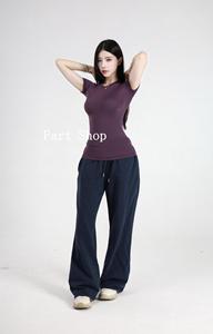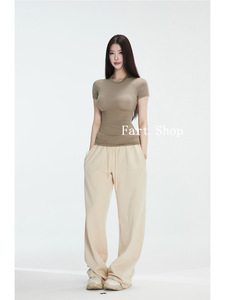 【Fart Shop】skim* 短袖春夏修身弹力正肩紧身粉色t恤半袖上衣女