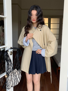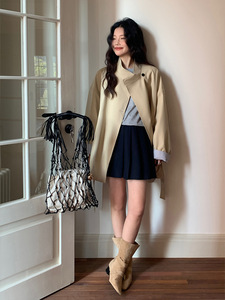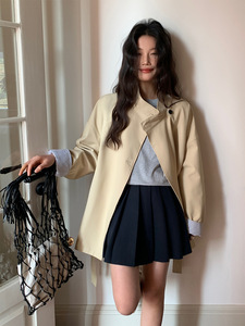 MOXI 十三行女装2025秋季新款休闲半高领长款小个子风衣外套女