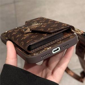 经典潮牌新款斜跨卡包适用iPhone16Promax插卡苹果零钱包手机壳13