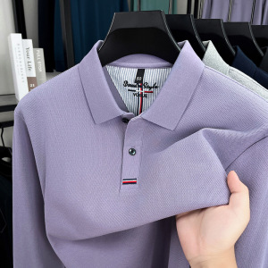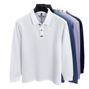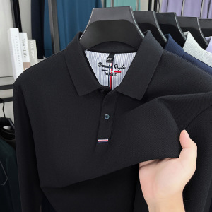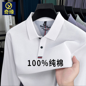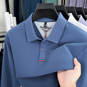 跨境纯棉polo衫男士2025秋季新款中年商务休闲纯色刺绣长袖男t恤