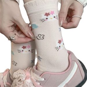 夏季潮百搭日系袜子女泳装可爱猫咪卡通堆堆袜透气花边四季中筒袜