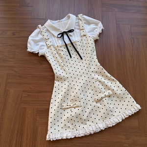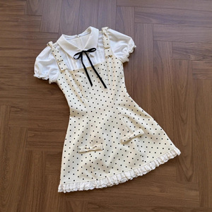 女童韩系背波点假两件吊带连衣裙中大童夏季新款斑点公主风A字裙