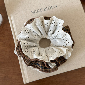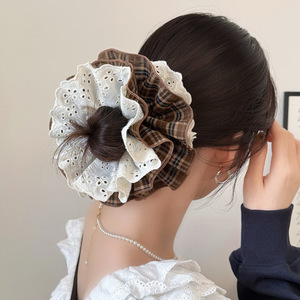 法式英伦风格子蕾丝大肠发圈女高级感慵懒风头花发绳复古丸子头绳