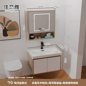主柜+智能镜柜+一体陶瓷盆-70cm【送龙头全套配件】
