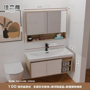 主柜+普通镜柜+一体陶瓷盆-100cm【送龙头全套配件】