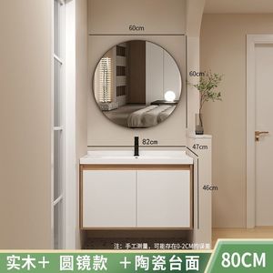 主柜+圆镜+一体陶瓷盆-80cm【送龙头全套配件】