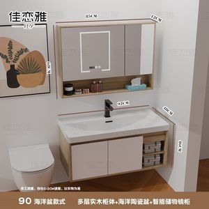 主柜+智能镜柜+一体陶瓷盆-90cm【送龙头全套配件】