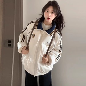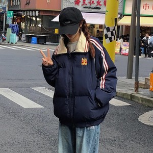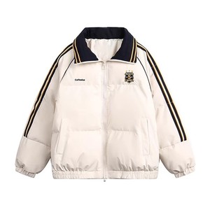 跨境复古学院风拼接撞色棉服女新款冬季加厚保暖宽松情侣棉衣外套