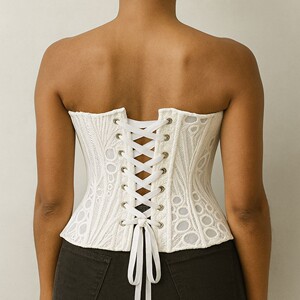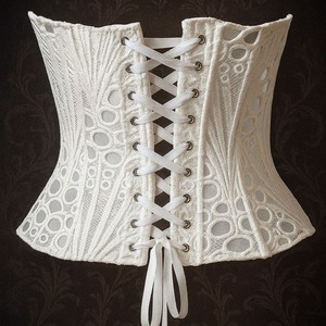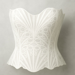 复古鱼骨收腰文胸 刺绣面料背手工绑带马甲式