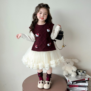 女童秋装连衣裙套装2025新款洋气儿童针织马甲女宝宝纱裙两件套潮