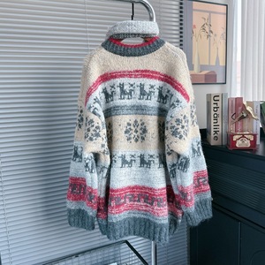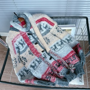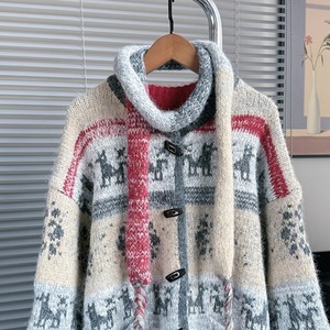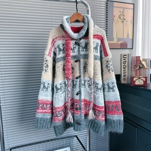 民族风提花费尔岛毛衣开衫女秋冬季新款宽松慵懒风高级感针织开衫