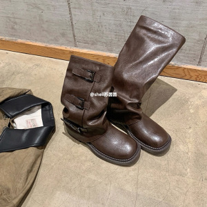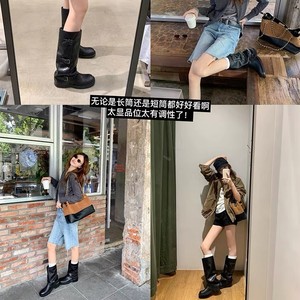 【苏茵茵】辣妹裤管靴~6.5cm增高扣带中筒西部骑士长靴女堆堆短靴