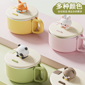 316卡通宿舍泡面碗 上班族带盖沥水泡面神器可爱动物学生方便面碗