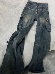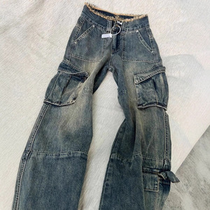 【韩牛】美式复古多口袋牛仔工装裤女秋冬新款宽松小个子直筒裤