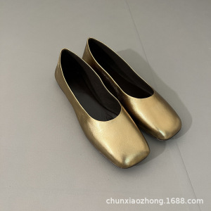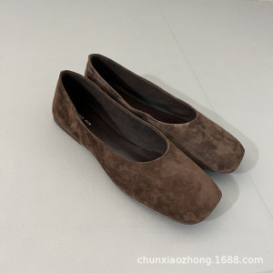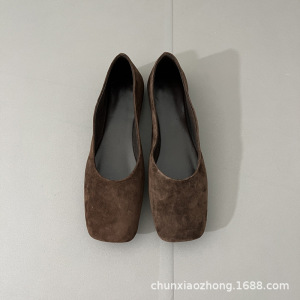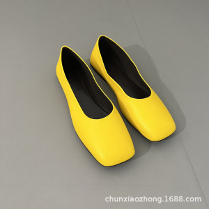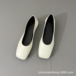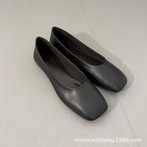纯源小众2025春夏新款TR方头舒适羊皮乐福鞋女可踩跟平底奶奶鞋潮