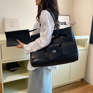 跨境大容量包包女夏季纯色2025新款休闲单肩包流行质感通勤托特包