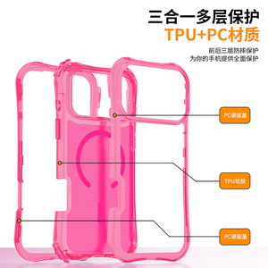 跨境热销美腰肤感磁吸手机壳配手绳适用iP17promax磨砂半透手机套