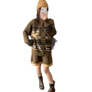 费尔岛毛衣套装女复古高级感超好看针织开衫外套秋冬季新款两件套