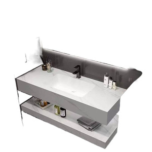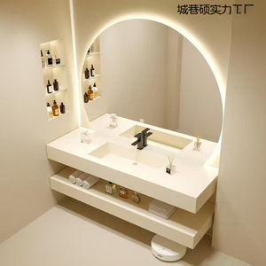 浴室双层岩板浴室柜一体组合无缝陶瓷酒店民宿洗漱卫生间洗脸盆用