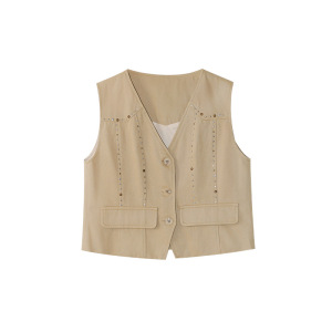 诠释美 NEWOPEN 25秋老钱风简约叠穿无袖纯棉v领马甲女短款F6209