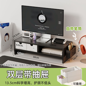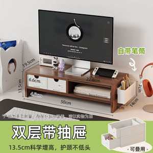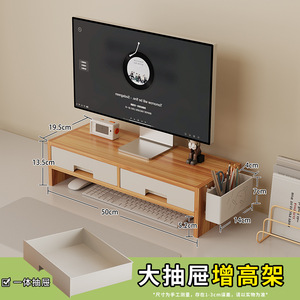 台式电脑增高架显示器支架抽屉式办公室屏幕托架收纳底座置物架
