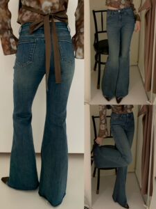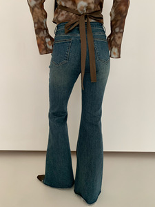诠释美 NEWOPEN 25秋复古水洗紧身瘦腿高腰微喇毛须牛仔裤女F6301