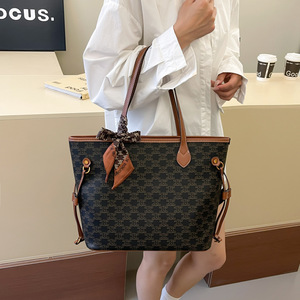 跨境新款大容量单肩腋下包休闲通勤印花高级感手提女包秋冬托特包