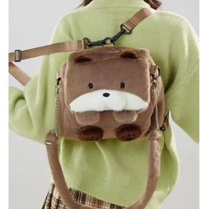 日系软萌卡通方款水獭双肩包可爱多功能单肩斜挎包美少女通勤书包